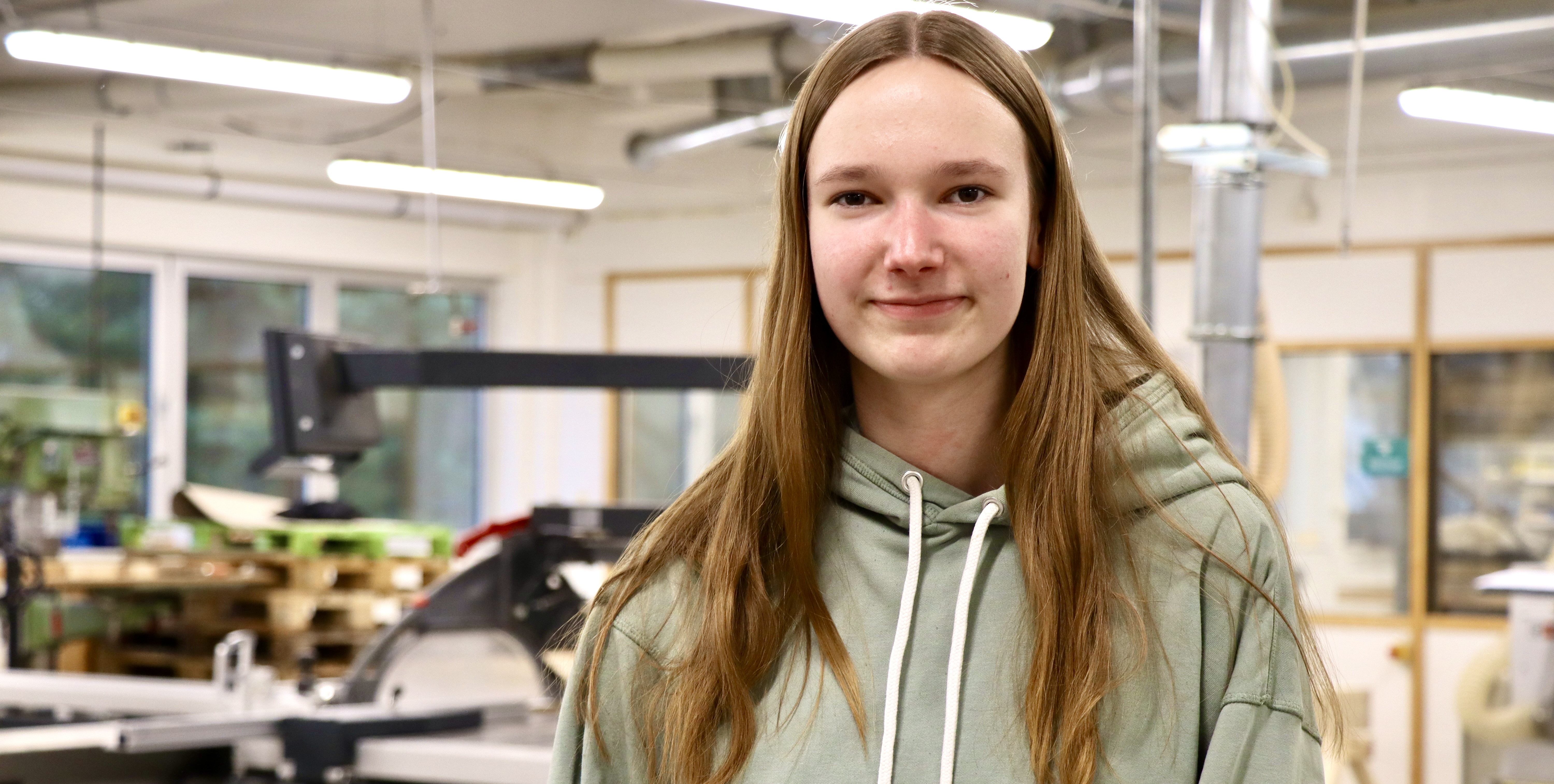 Alva-Lotta Freiske bor i Boet i Ödeshögs kommun och studerar sitt första år på Hantverksprogrammet, som till läsåret 2025/2026 byter namn till Finsnickeriutbildningen.