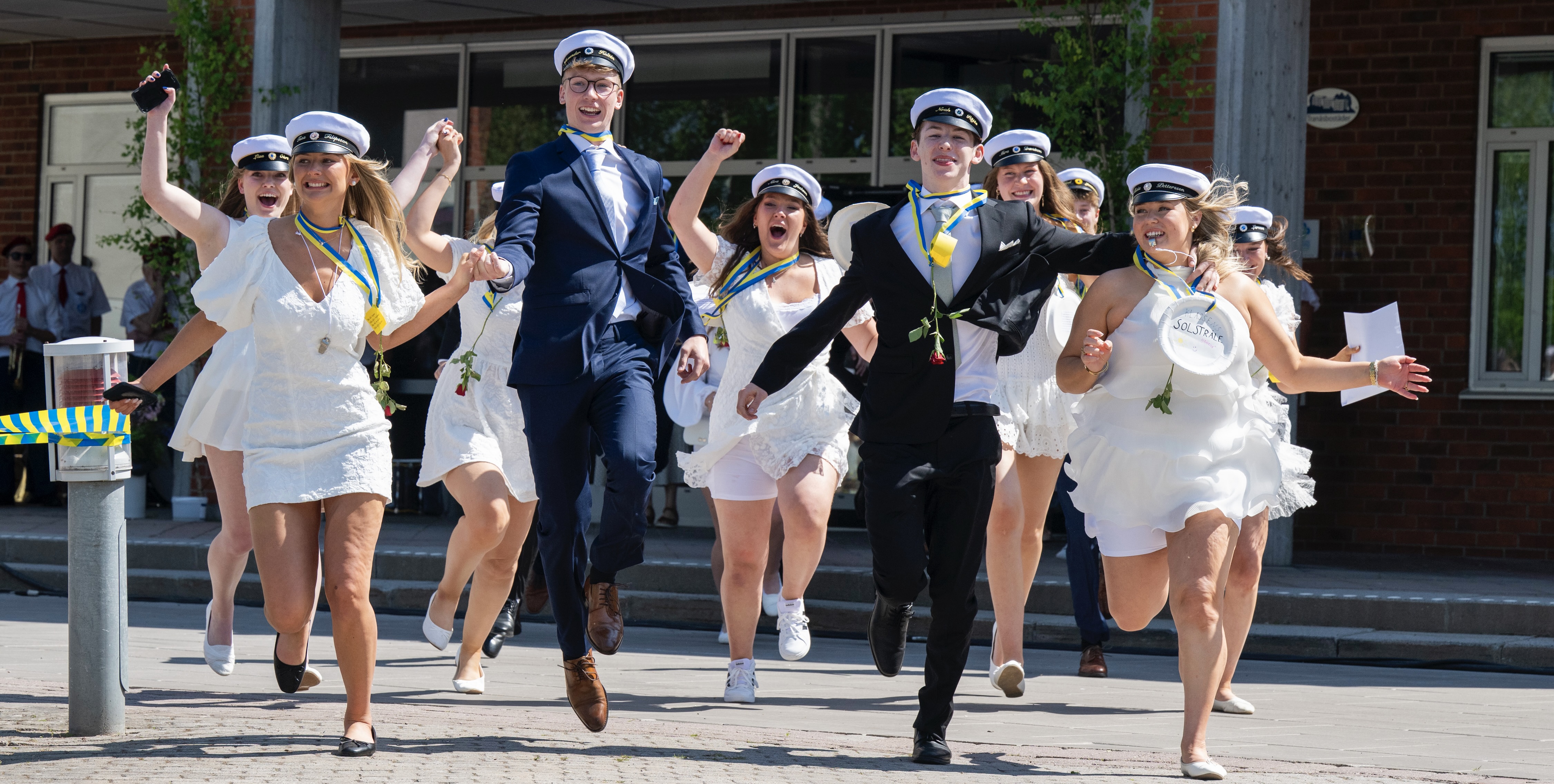 Lördagen bjöd på solsken, feststämning och känslosamma avsked för årets studenter. Utanför huvudentrén hade familj, släkt och vänner samlats för att fira de 245 avgångseleverna – och när klockan slog 12.00 var det äntligen dags för det efterlängtade utspringet.