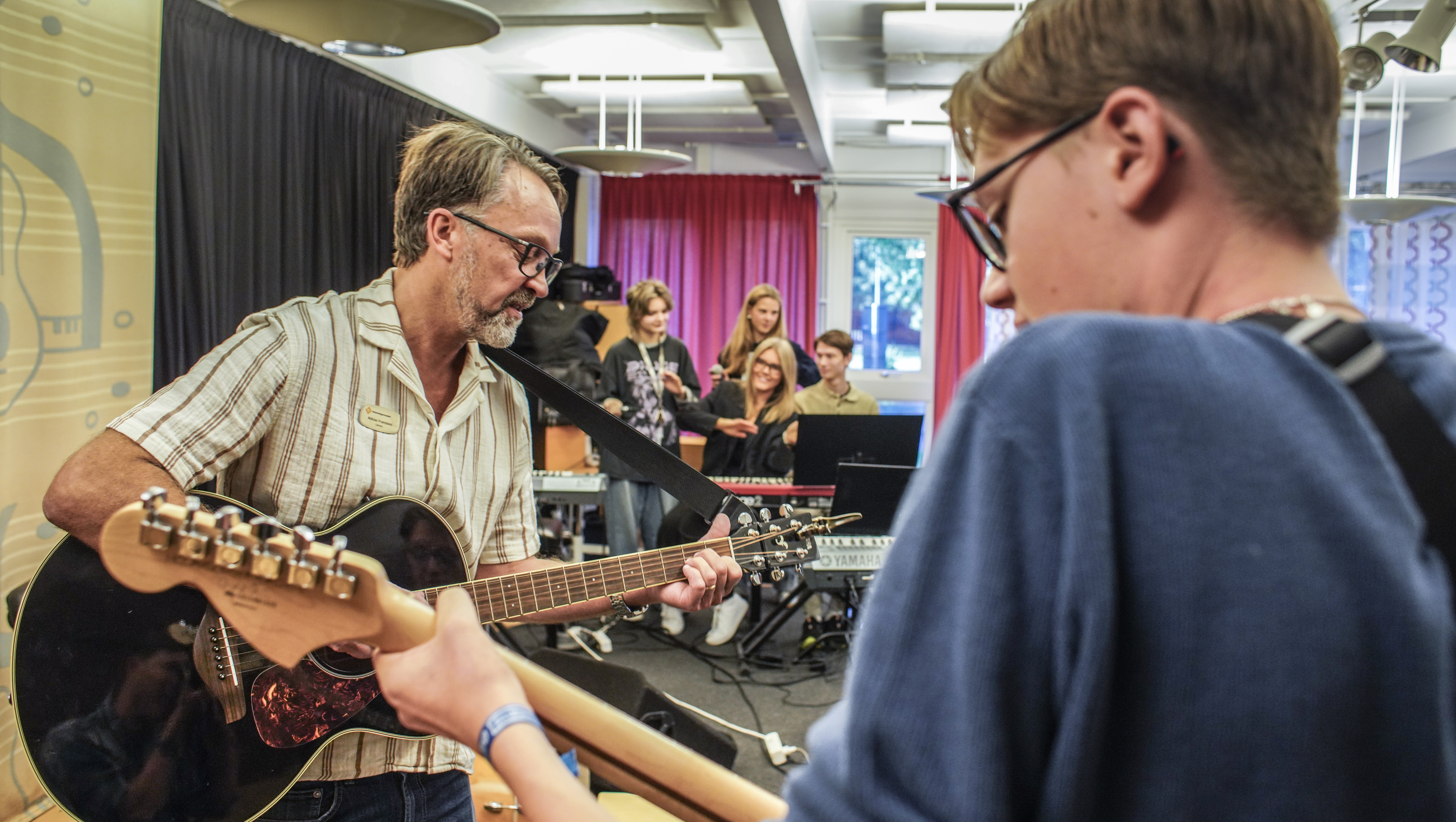 Du som väljer inriktningen Musik får spela instrument och sjunga både enskilt och i grupp. Du får uppträda på konserter, såväl på som utanför skolan. Du läser kursen Musikteori, där du jobbar mer teoretiskt med till exempel notläsning. I kursen Musikproduktion får du lära dig det tekniska: att spela in, mixa och att producera musik.