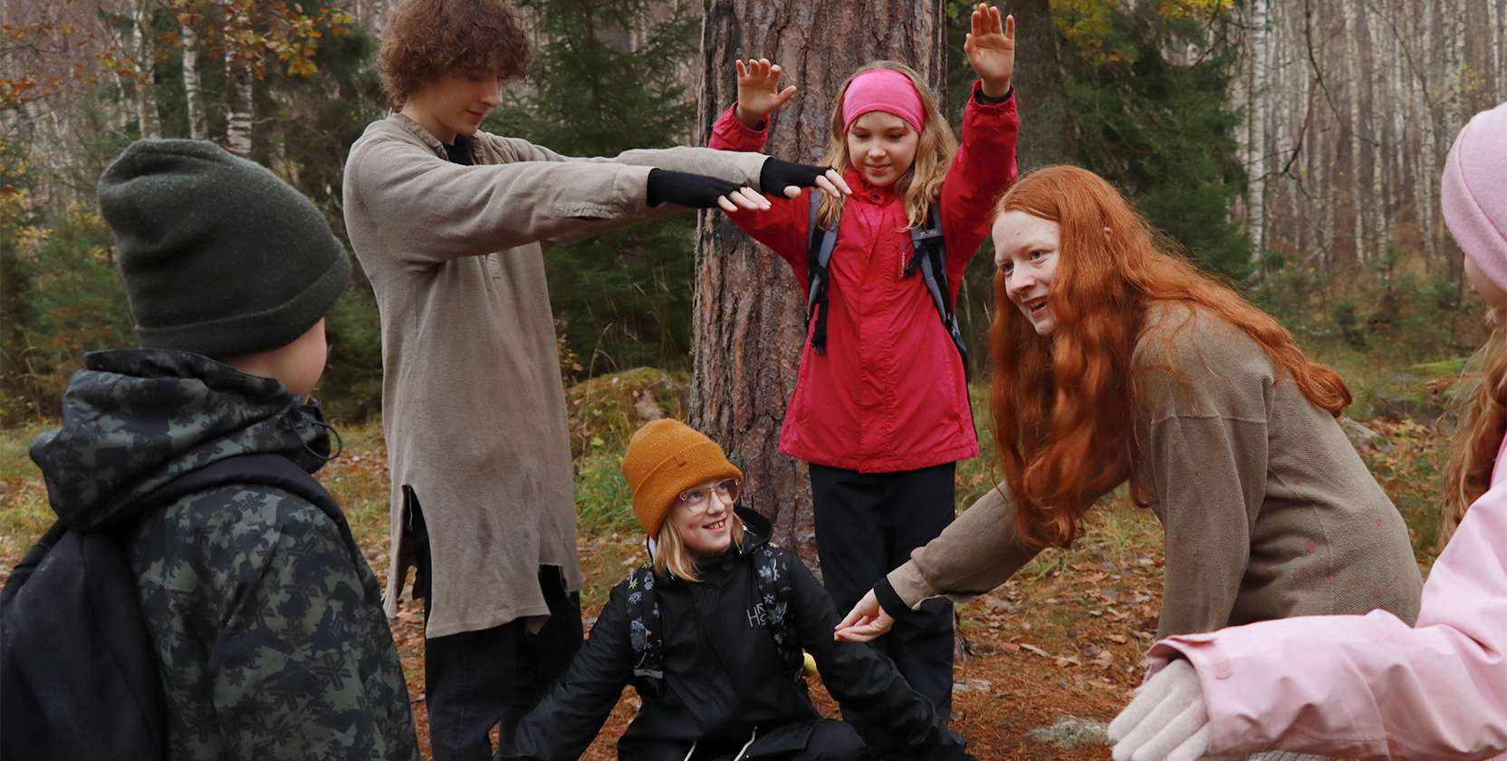 Under en förmiddag i vecka 42 fick kommunens fjärdeklassare ge sig in i ett äventyr i Östanåparken där språket stod i centrum. På sin promenad mötte eleverna levande björkar, rövare, älvor och troll. Tillsammans med de magiska väsendena skapade barnen i fjärde klass en saga och jobbade under promenadens gång med språkutveckling. Trots att promenaden genomfördes i ett riktigt höstrusk var barnen med på tåget och intresserade av vad som lurade bakom nästa krök. Hos björkarna fick barnen se sin påhittade historia gestaltas av levande björkar, älvorna lärde barnen om verb, trollen underhöll med sång medan rövarna drog in eleverna i sin improvisation.